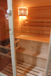 Это специально оборудованная готовая деревянная кабина для сухого и влажного парения. Электропечь нагревает пространство внутри и позволяет сбрызгивать камни водой, слегка увлажняя воздух. Такая процедура позволяет избежать перегрева. Сауна обшита снаружи и внутри кедровой вагонкой и имеет теплоизоляционный слой. Финская сауна с электропечью подойдет, как для домашнего использования, так и для коммерции. Доставляется в разборном виде щитами, собирается по инструкции с помощью шуруповёрта.