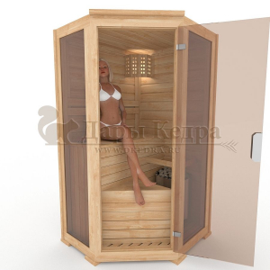 Одноместная угловая финская сауна кабина из кедра и липы с электрокаменкой