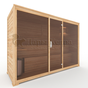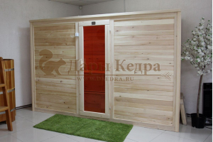 Финская сауна с электрокаменкой представляет собой компактную парную кабину, изготовленную из целебной древесины сибирского кедра. Финская