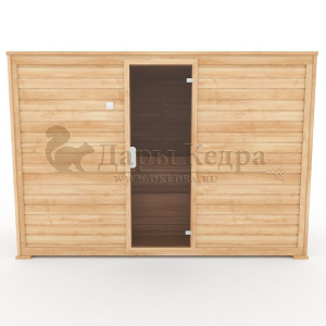 Это специально оборудованная готовая деревянная кабина для сухого и влажного парения. Электропечь нагревает пространство внутри и позволяет сбрызгивать камни водой, слегка увлажняя воздух. Такая процедура позволяет избежать перегрева. Сауна обшита снаружи и внутри кедровой вагонкой и имеет теплоизоляционный слой. Финская сауна с электропечью подойдет, как для домашнего использования, так и для коммерции. Доставляется в разборном виде щитами, собирается по инструкции с помощью шуруповёрта.
