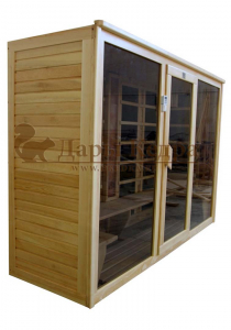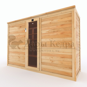 Это специально оборудованная кедровая кабина для прогрева тела человека сухим теплом. Воздух в таких парных не нагревается. Инфракрасные лучи воздействуют на тело, равномерно прогревая мышцы, суставы и органы. Карбоновые излучатели, встроенные в стены кабины, обладают мягким прогревом, что полностью исключает возможность ожога. Работает кабина за счет электричества. Пятиместная инфракрасная сауна с карбоновыми излучателями подходит для коммерции.