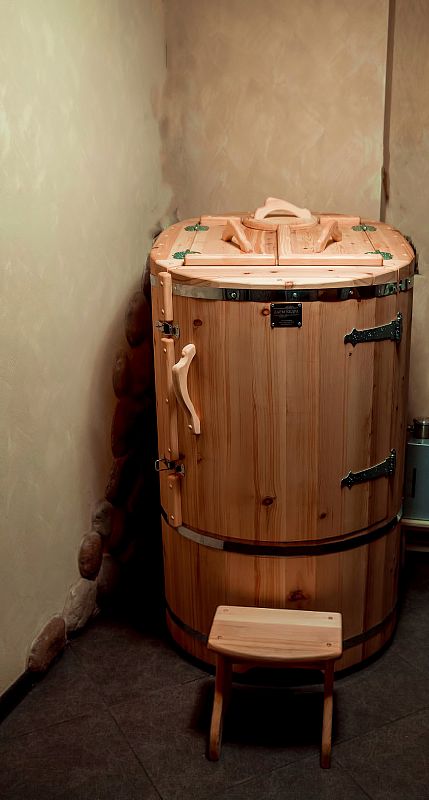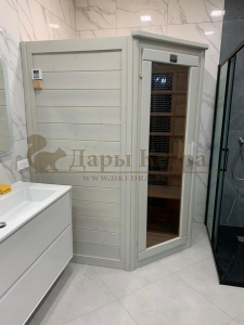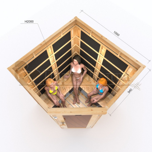 Это специально оборудованная кедровая кабина для прогрева тела человека сухим теплом. Воздух в таких парных не нагревается. Инфракрасные лучи воздействуют на тело, равномерно прогревая мышцы, суставы и органы. Карбоновые излучатели, встроенные в стены кабины, обладают мягким прогревом, что полностью исключает возможность ожога. Работает кабина за счет электричества. Установка сауны в угол, позволяет рационально использовать пространство помещения. Подходит как для домашнего использования, так и для коммерции.